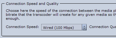 This determines how the transcoder will scale (down) your media in order to conserve network bandwidth. We want the best image possible so set both of these fields to the maximum resolution of your television. I have a 1080p native set so I set it to 1920×1080. If you’re at 720p set it to 1280×720. The “Image resolution” boxes pertain to photos, it does not hurt to crank them all the way up as well.