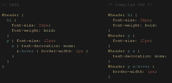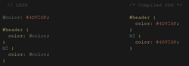 Recently I have been playing around with a dynamic stylesheet language: Less. Less extends CSS with dynamic behavior such as variables, mixins, operations and functions. LESS runs on both the client-side (IE 6+, Webkit, Firefox) and server-side, with Node.js (which can be downloaded here ). I like how you can specific a variable in one place, then call to it anywhere in the stylesheet, this simplifies to search and replace feature when you have to make a global change.